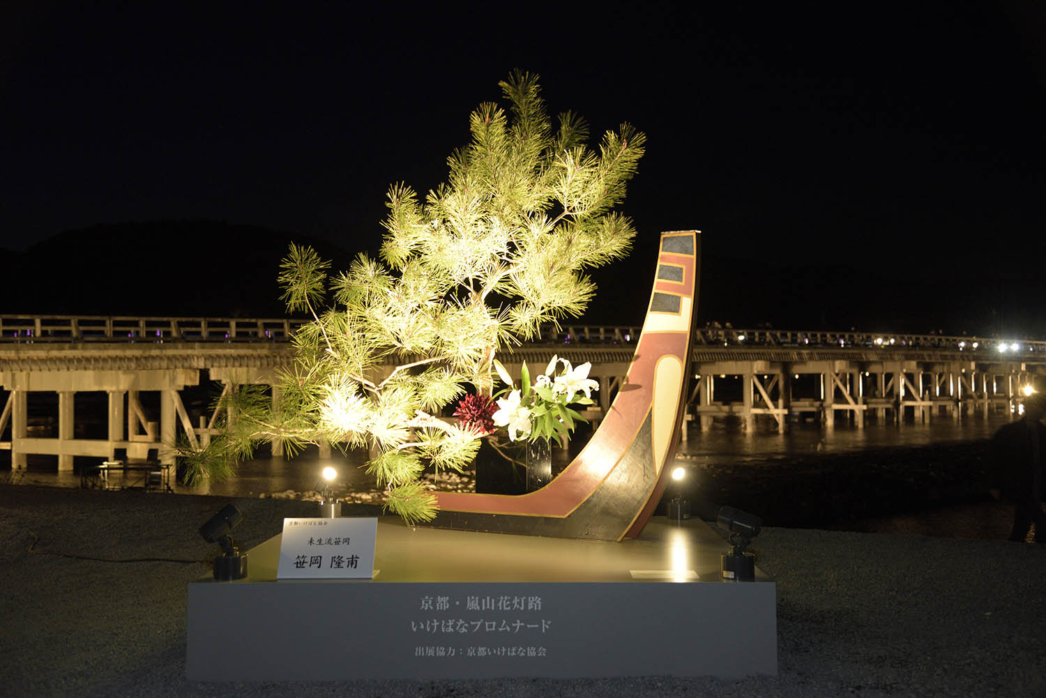 日本情緒豊かな陰影のある露地行灯の「灯り」といけばな作品の「花」でつなぎ、